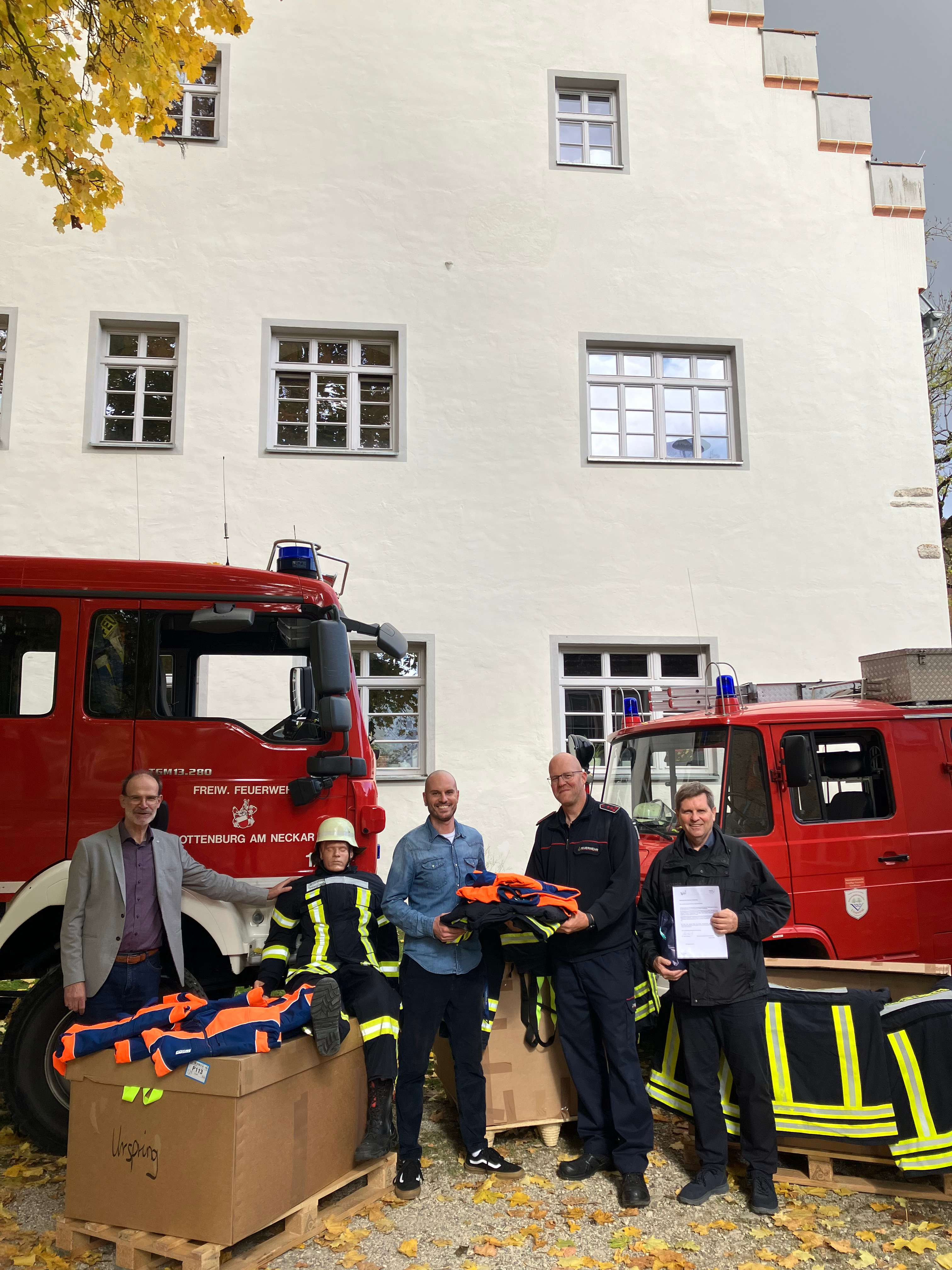 Hochwertige Schutzkleidung und eine Übungspuppe für die Feuerwehr.08./